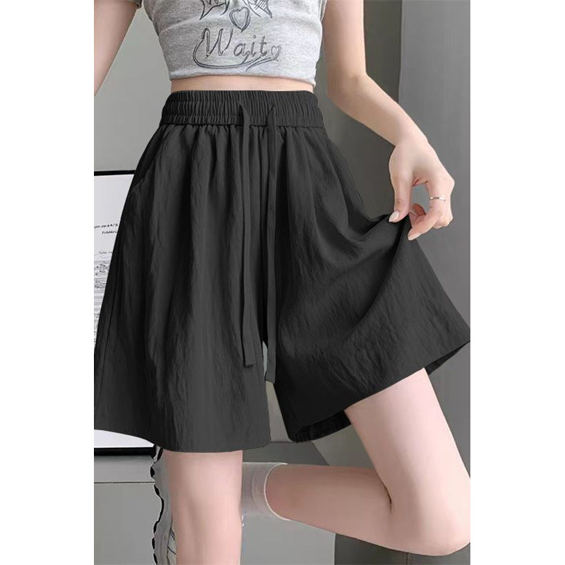 Celana pendek hitam wanita 2023 musim semi/musim panas ukuran besar celana kaki lebar gadis gemuk pinggang tinggi longgar pakaian luar pelangsing a-line kasual celana panas