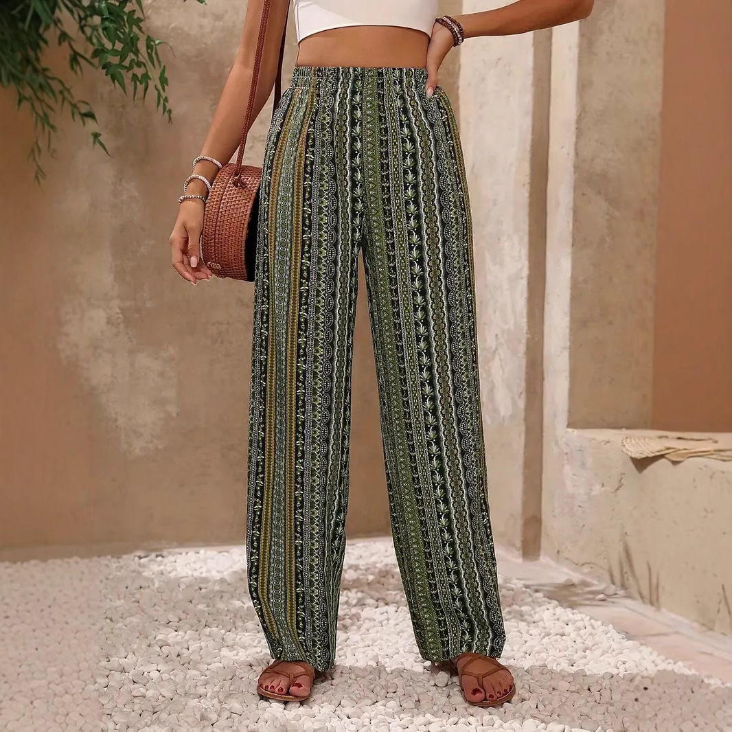 2025 Celana Lurus Kasual Bercorak Pinggang Tinggi Longgar Wanita Musim Semi dan Musim Panas Model Baru Amazon Border Eropa dan Amerika