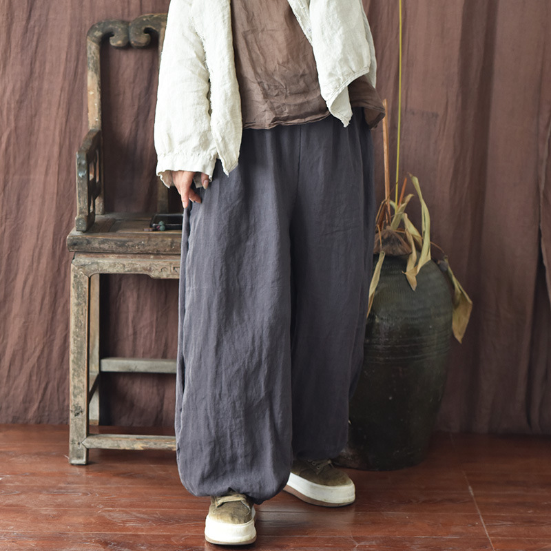 Yunqiyong/pasir cuci linen asli retro wanita ukuran besar bloomers lobak celana katun linen celana longgar wanita