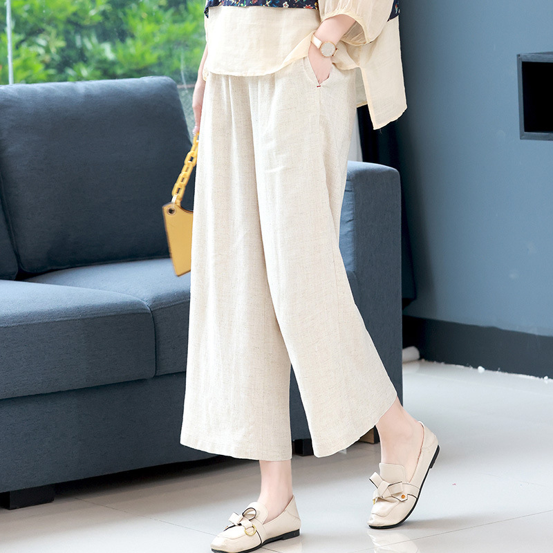 Celana Lurus Katun Linen Mudah Dipadu Padan Dipakai Luar Celana Kulot 9/10 Gaya Menggantung Pinggang Tinggi Model Baru Musim Panas Wanita Celana Kasual Linen Ukuran Besar