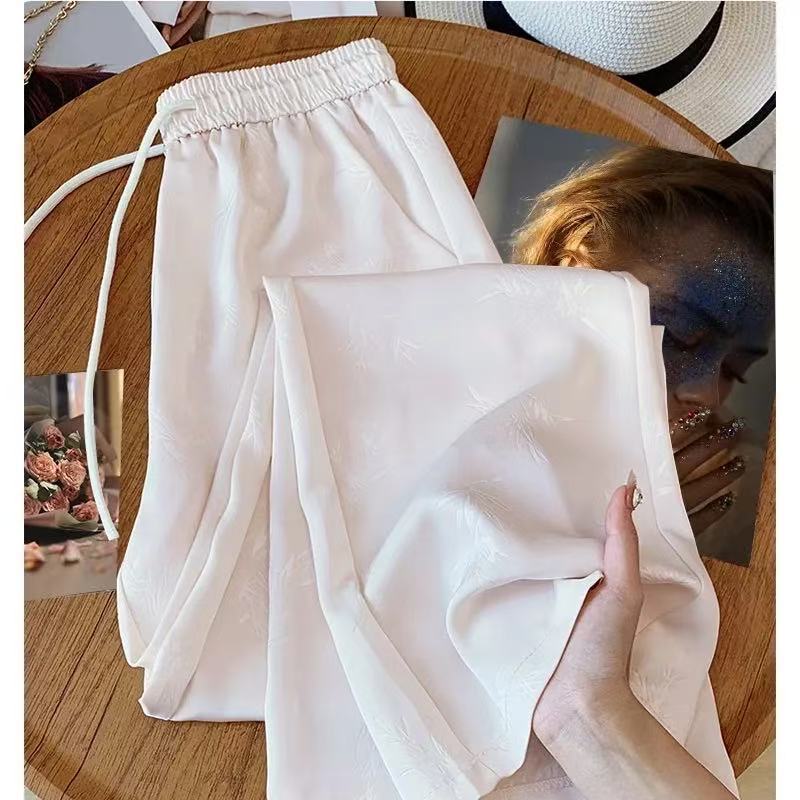 Ukuran Besar 85-300Kg Celana Kaki Lebar Sutra Es Tipis Wanita Lemak Celana Kasual Lurus Pinggang Tinggi Model Baru Musim Panas Wanita