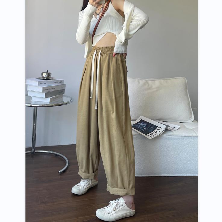 Celana Olahraga Wanita Musim Panas 2025 Model Baru Celana Kasual Longgar Terlihat Langsing Pinggang Tinggi Model Tipis Celana Lobak Harem Malas