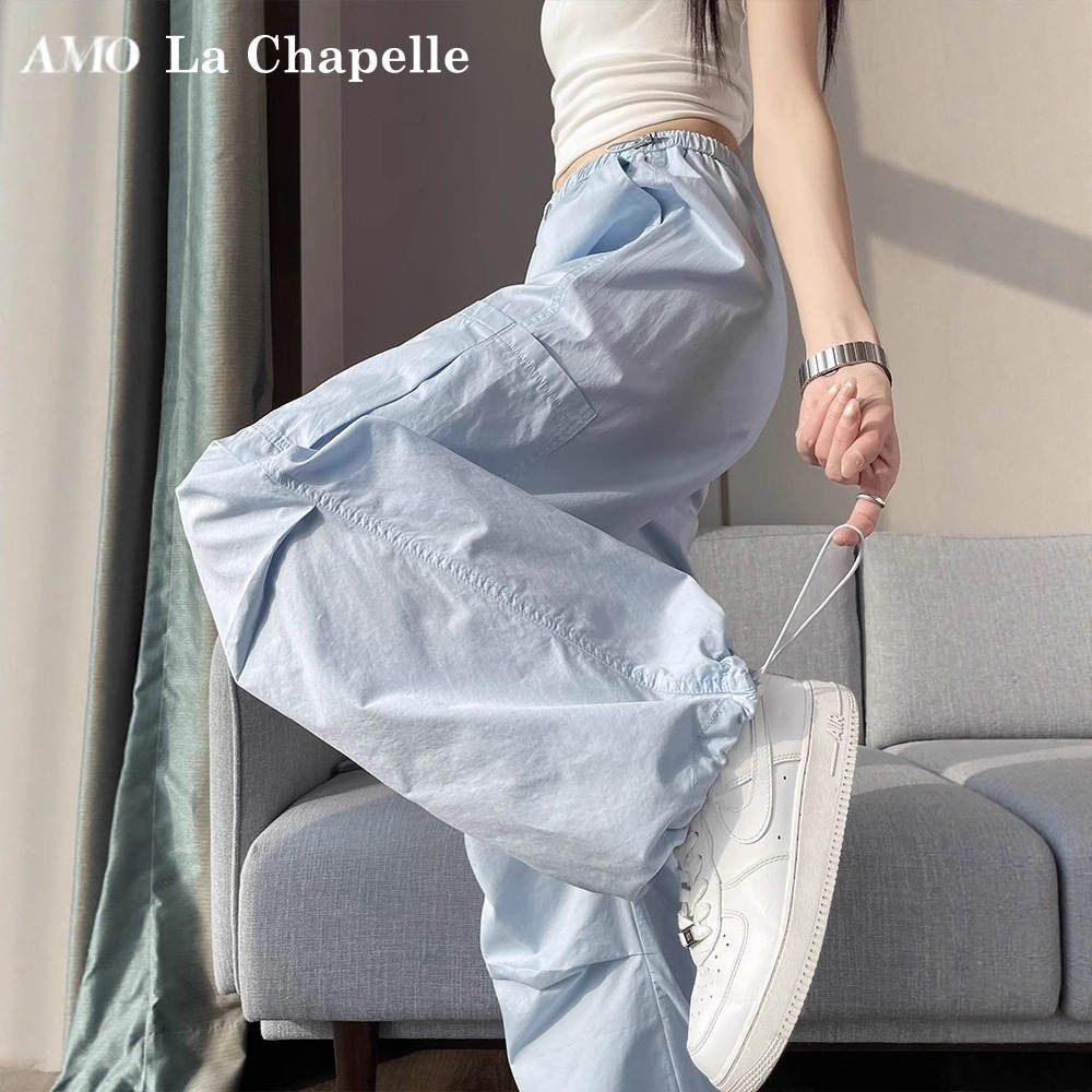 Celana Parasut Gaya Amerika Cepat Kering Model Tipis Musim Panas Celana Karung Wanita Kaki Lebar Ukuran Besar Model Baru 2025 Grosir