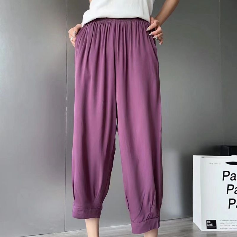 Celana Longgar Harem Lurus Longgar Ukuran Besar Pinggang Elastis Pasangan Jepang dan Korea Wanita Celana Kecepatan Kering 9/10 Kasual Model Tipis Rasa Es Musim Panas