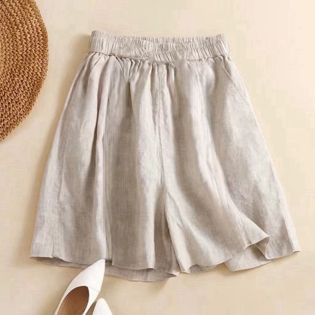 Celana pendek wanita, celana pendek wanita pinggang tinggi gaya Korea, celana pendek linen katun dan linen, celana pelangsing longgar, celana kasual ukuran besar