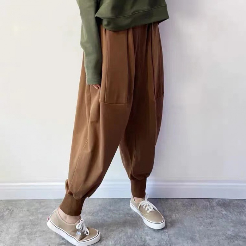 Celana harem longgar ukuran besar untuk wanita, celana harem katun musim gugur musim dingin, celana kasual Olahraga ikat pergelangan kaki, celana jahitan gaya Korea ukuran plus, celana olahraga lobak