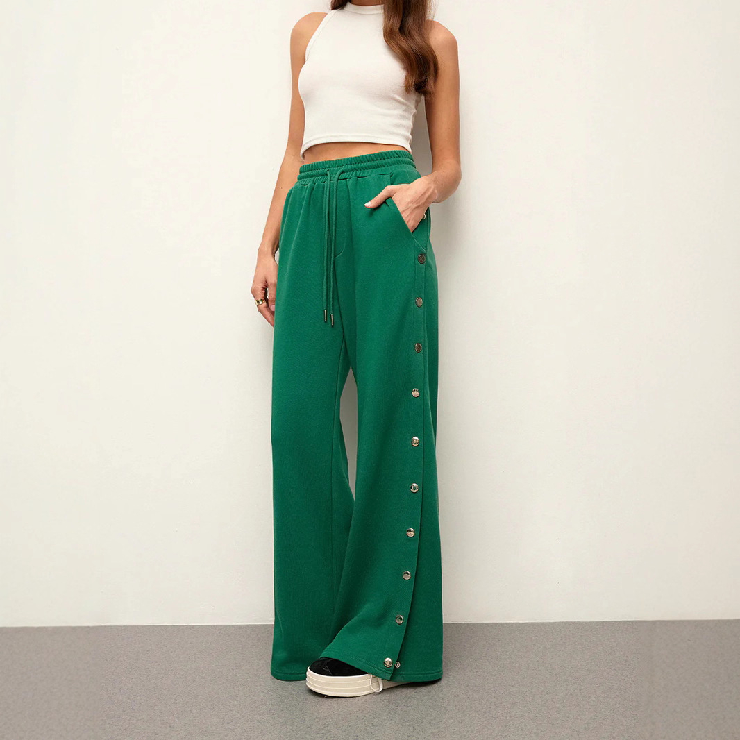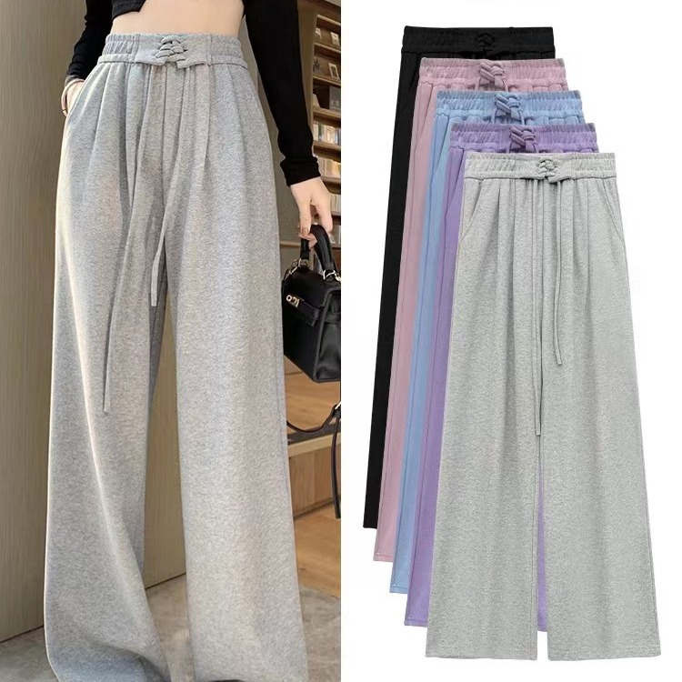 Amazon Tiktoktemu Pakaian Wanita Eropa dan Amerika Celana Kaki Lebar Warna Polos Mudah Dipadu Padan Model Baru Musim Semi dan Musim Panas 2025 Celana Kasual