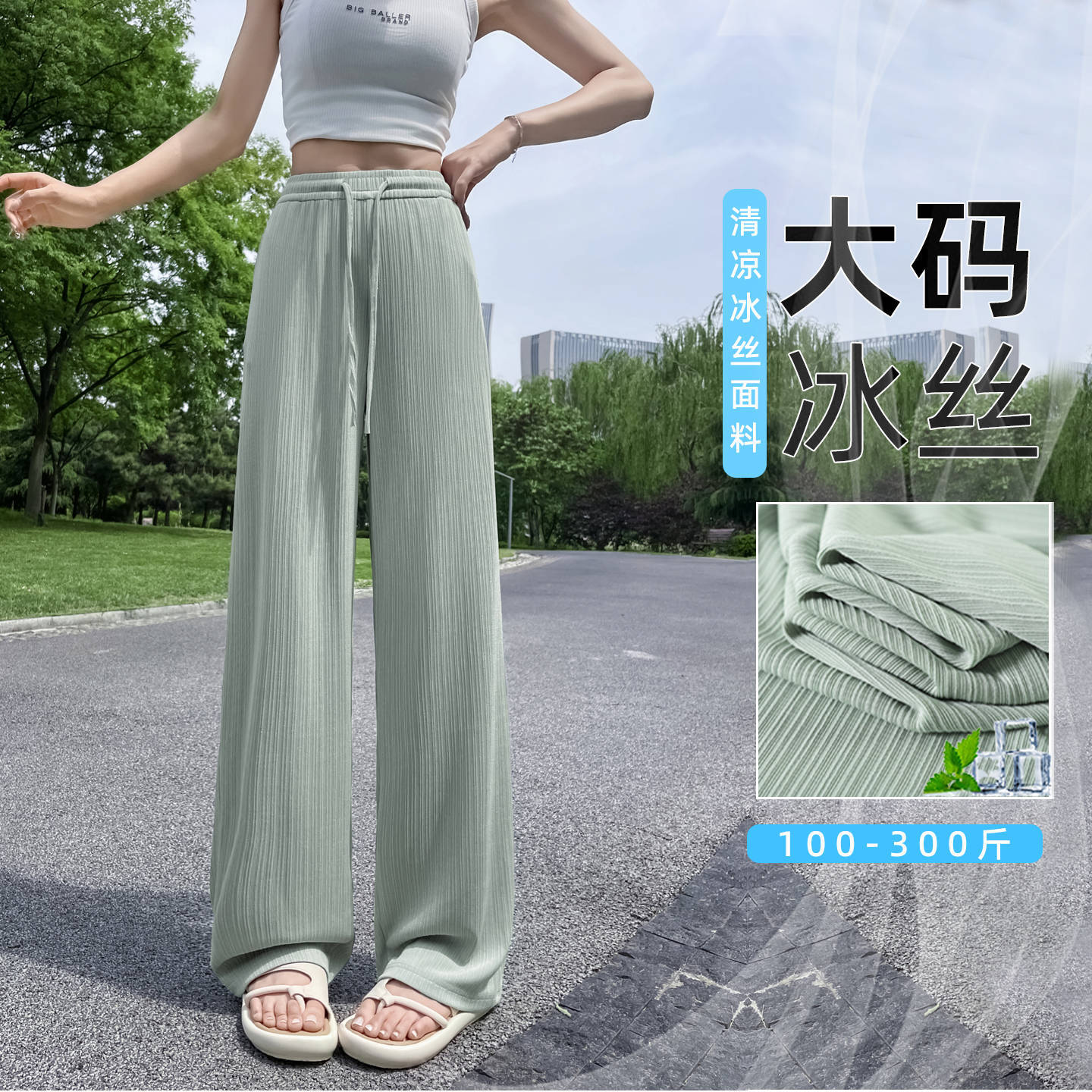 Celana Wanita Ukuran Besar Model Tipis Musim Panas Celana Kaki Lebar Versi Sempit Wanita Gemuk 200Kg Celana Sutra Es Tambah Lemak Celana Kasual Terlihat Langsing
