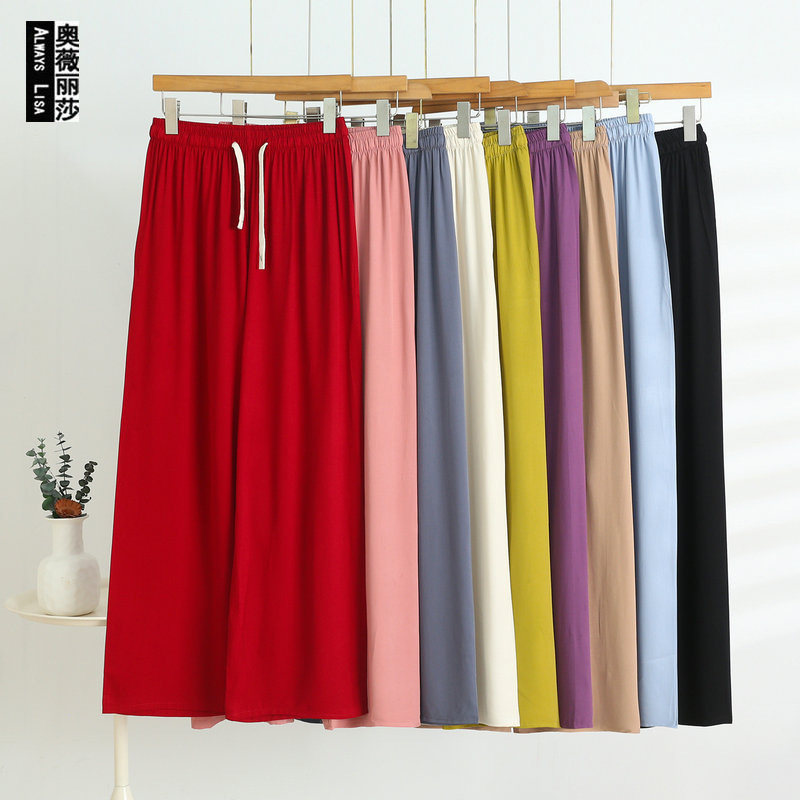 Celana Lurus Katun Sutra Wanita Musim Panas Celana Lurus Katun Buatan Wanita Terlihat Langsing Ukuran Besar Longgar Celana Rumah Tangga Celana Kasual Bisa Dipakai Luar