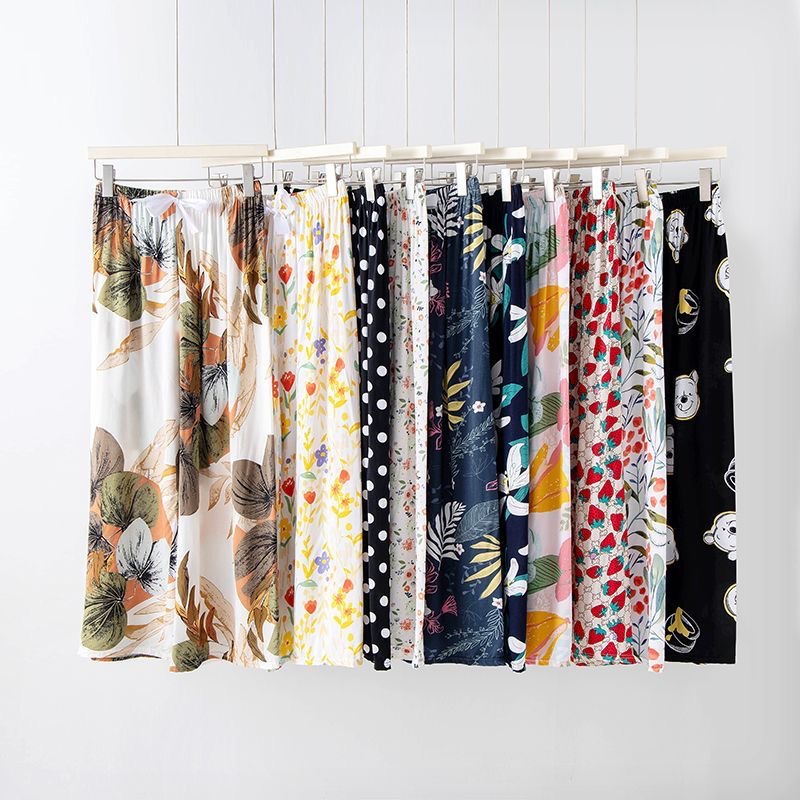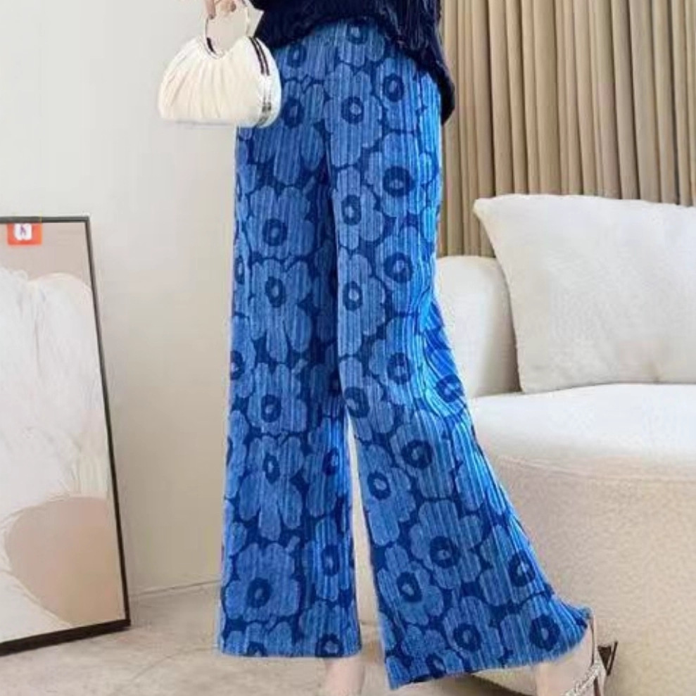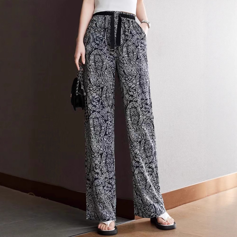 Celana Sutra Es Wanita Musim Panas Ukuran Besar Model Tipis Celana Bunga Pelindung Terik Matahari Celana Kaki Lebar Lurus Wanita Pinggang Tinggi Celana Panjang Rasa Jatuh Perdagangan Luar Negeri