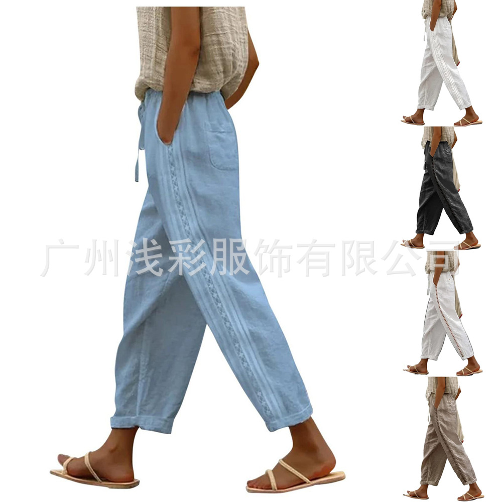 Celana Kaki Lebar Katun Linen Celana 7/8 Model Tipis Musim Panas Wanita Celana Rok Katun Linen Model Baru 2025 Celana Kasual Lurus Wanita Berukuran Besar
