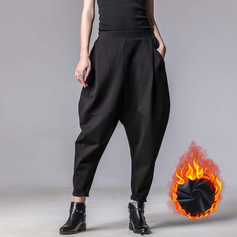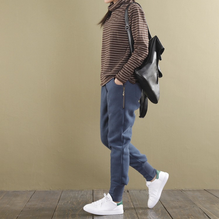 Celana olahraga wanita, 8332 katun dan linen gaya artistik ritsleting garis bulu celana olahraga musim gugur dan musim dingin celana kasual tebal ukuran besar