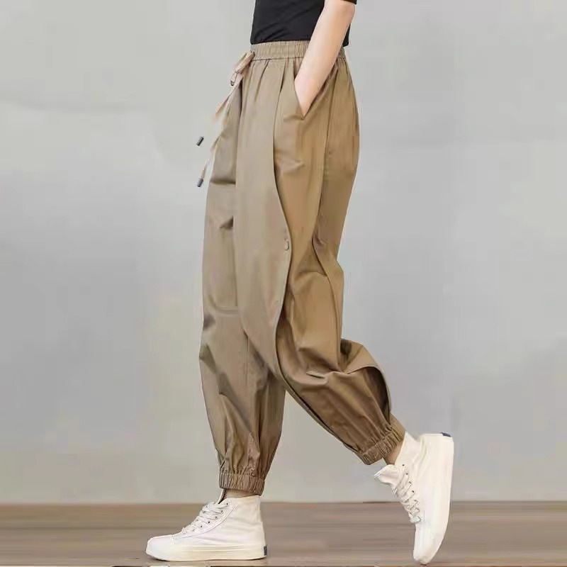 Celana harem katun murni untuk wanita musim panas 2025, celana jogger kasual katun-linen tipis longgar, celana cropped carrot plus size yang melangsingkan
