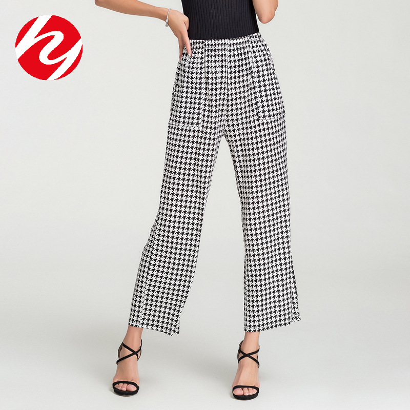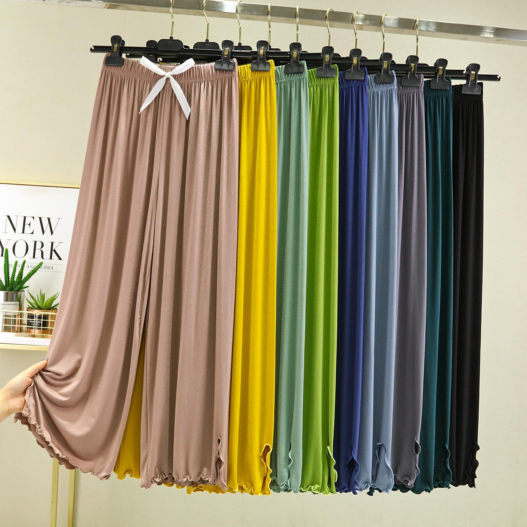 Modal baru celana lurus sobek tepi terbang pinggang tinggi musim semi dan musim panas ukuran plus celana kasual celana piyama celana kaki lebar wanita