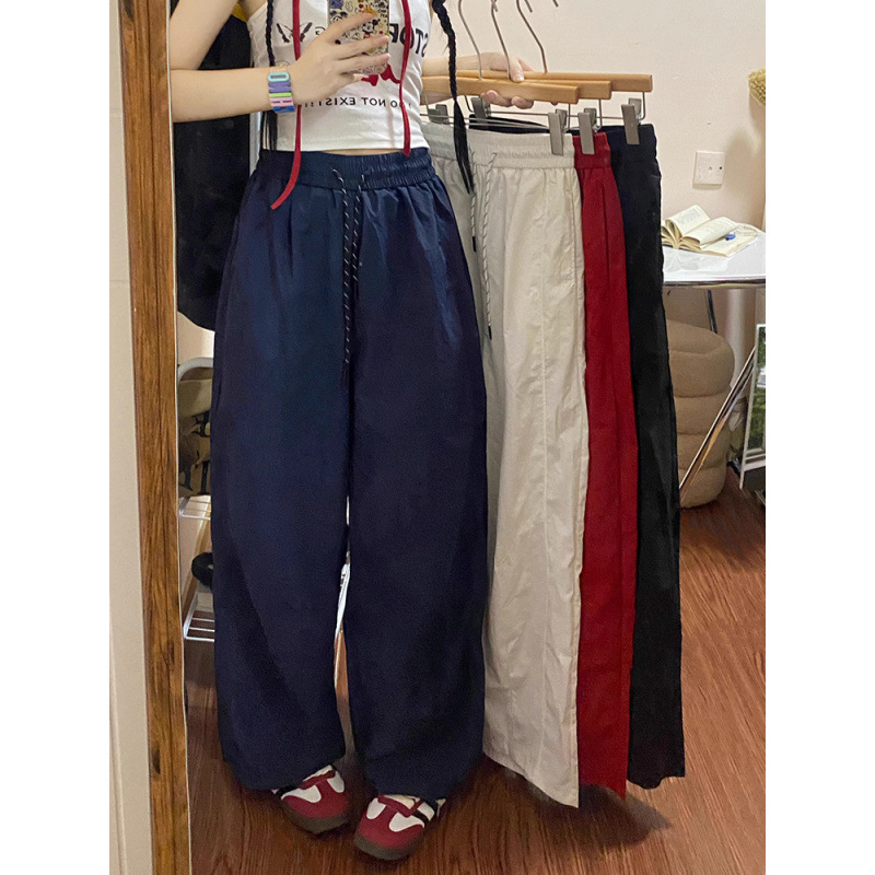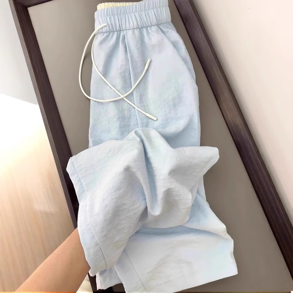 Celana Panjang Cepat Kering Sutra Es Ukuran Besar Celana Kaki Lebar Celana Olahraga 9/10 Lurus Tubuh Kecil Terlihat Ramping Longgar Model Tipis Musim Panas Anak-anak