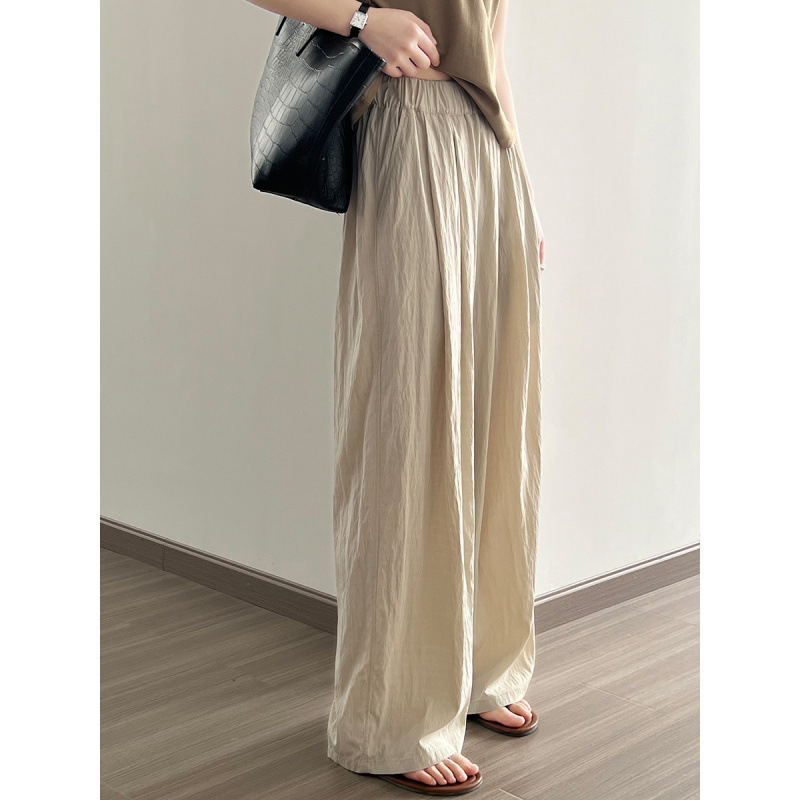 Celana Kasual Lipit Model Tipis Gaya Desain Ukuran Besar Gaya Baru Jepang Korea Musim Panas Celana Panjang Kaki Lebar Longgar Gaya Menggantung Wanita Gaya Jepang