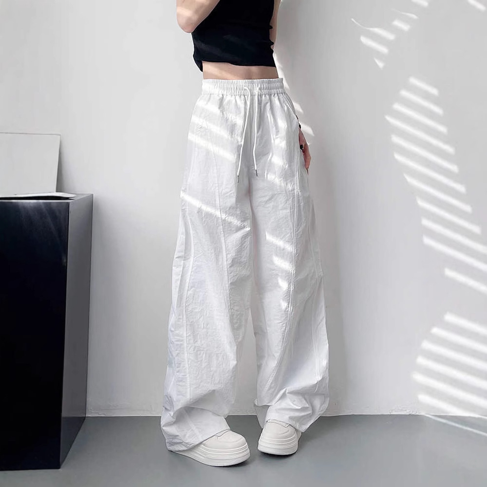 Celana Kaki Lebar Dingin Musim Panas Warna Putih Celana Kasual Menutupi Daging Terlihat Langsing Wanita Berukuran Besar Ukuran Besar Celana Olahraga Cepat Kering Tali Serut Pinggang Tinggi