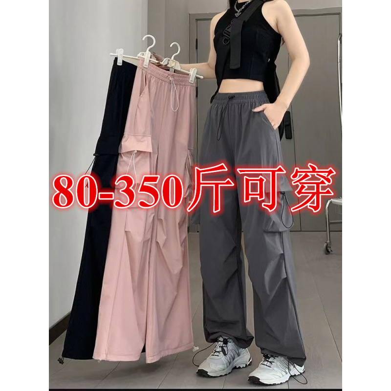 Celana Kerja Ukuran Besar 300Kg Cepat Kering Musim Panas Wanita 2024 Model Baru Pinggang Tinggi Kaki Lebar Celana Olahraga Mendaki Gunung Gaya Amerika