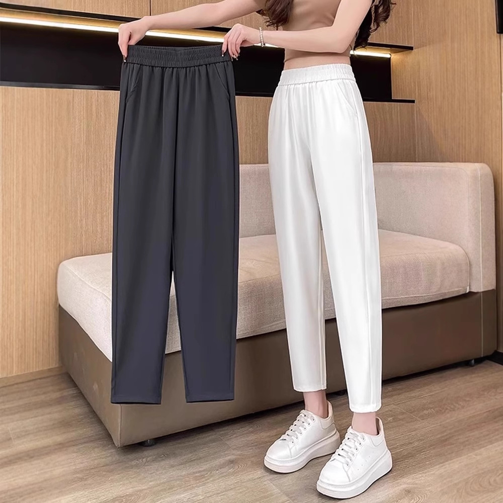 Celana Olahraga Wanita Musim Panas 2025 Model Baru Celana Kasual Longgar Terlihat Langsing Pinggang Tinggi Model Tipis Celana Lobak Harem Malas