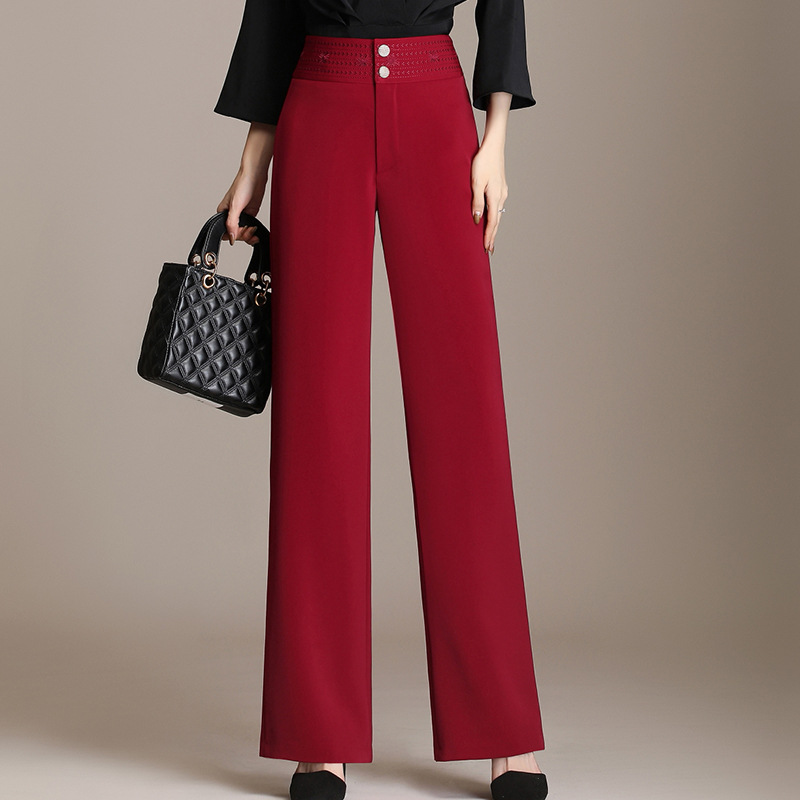 Celana Kasual Wanita Longgar Musim Semi Musim Gugur Celana Lurus Pinggang Tinggi Ibu Paruh Baya