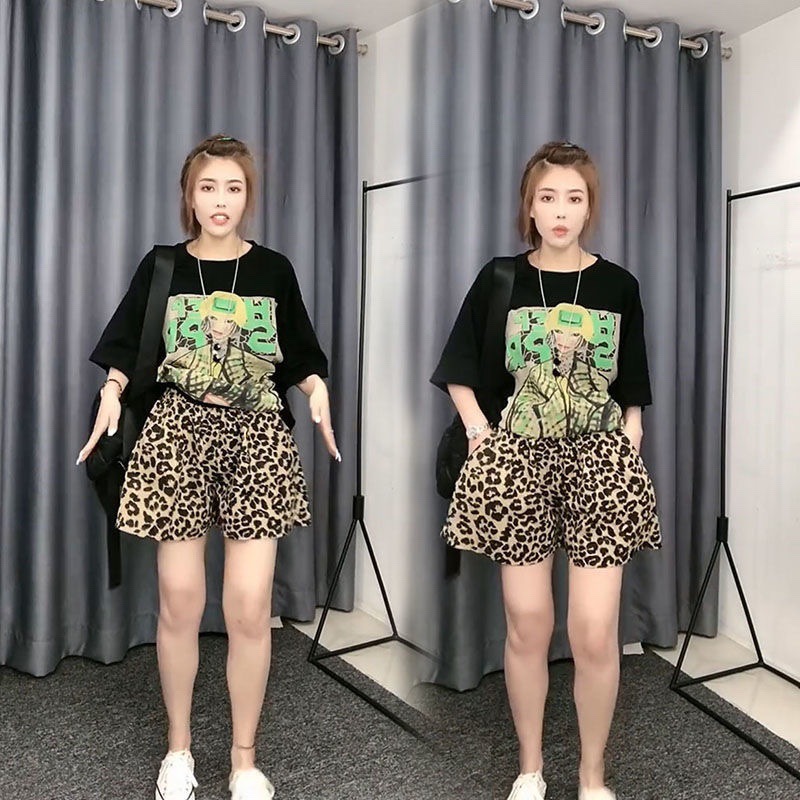 Celana pendek cetakan macan tutul stasiun Eropa ukuran Plus 300kg fat m celana pendek wanita musim panas fashion baru seksi Semua cocok
