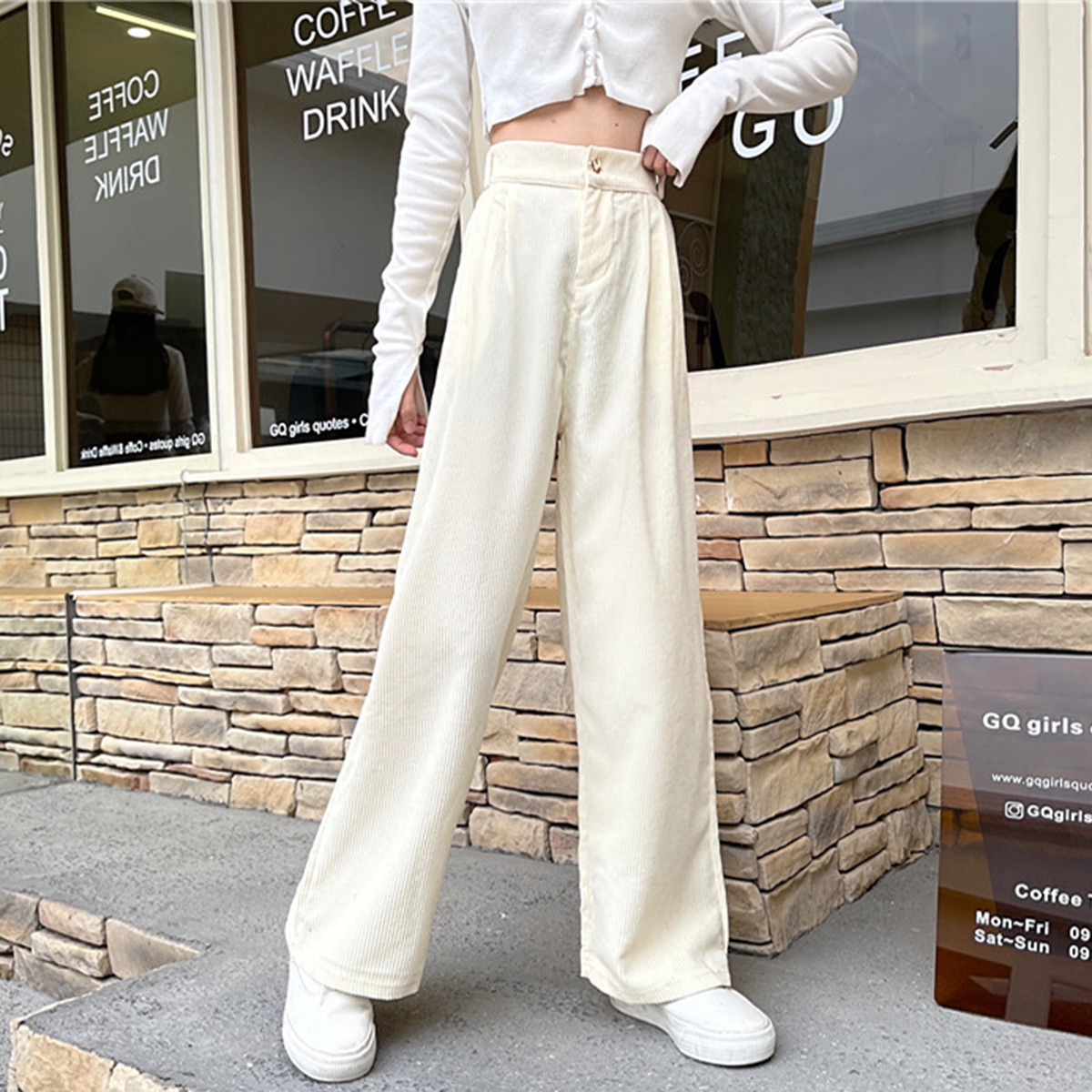 Celana kasual korduroi lurus pinggang tinggi elegan sederhana perdagangan luar negeri Eropa dan musim gugur baru musim semi dan musim gugur PG110 wanita
