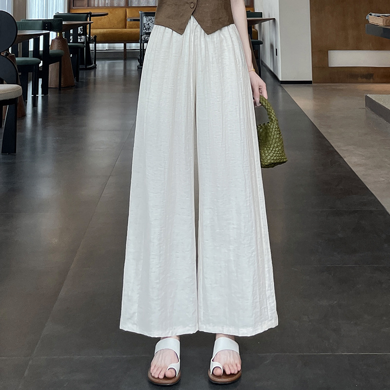 2024 musim semi dan musim panas baru tusuk gigi es sutra celana kaki lebar wanita pinggang tinggi menggantung celana lurus longgar ukuran besar celana kasual