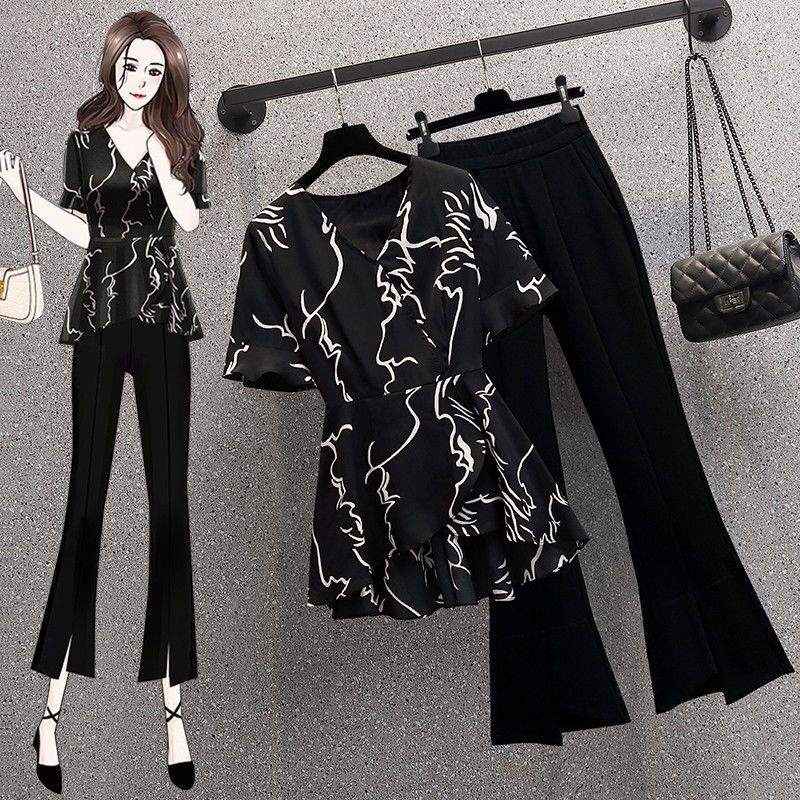 Pakaian wanita ukuran besar, pakaian wanita ramping elegan, gaya baru musim panas 2022, baju fashion penutup perut ketat, setelan atasan celana crop
