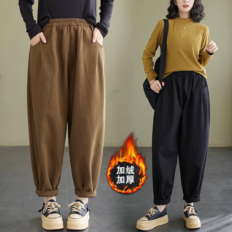 Celana wanita ukuran Plus, celana harem longgar kasual baru musim gugur dan musim dingin mm, celana berlapis bulu tebal musim gugur dan musim dingin
