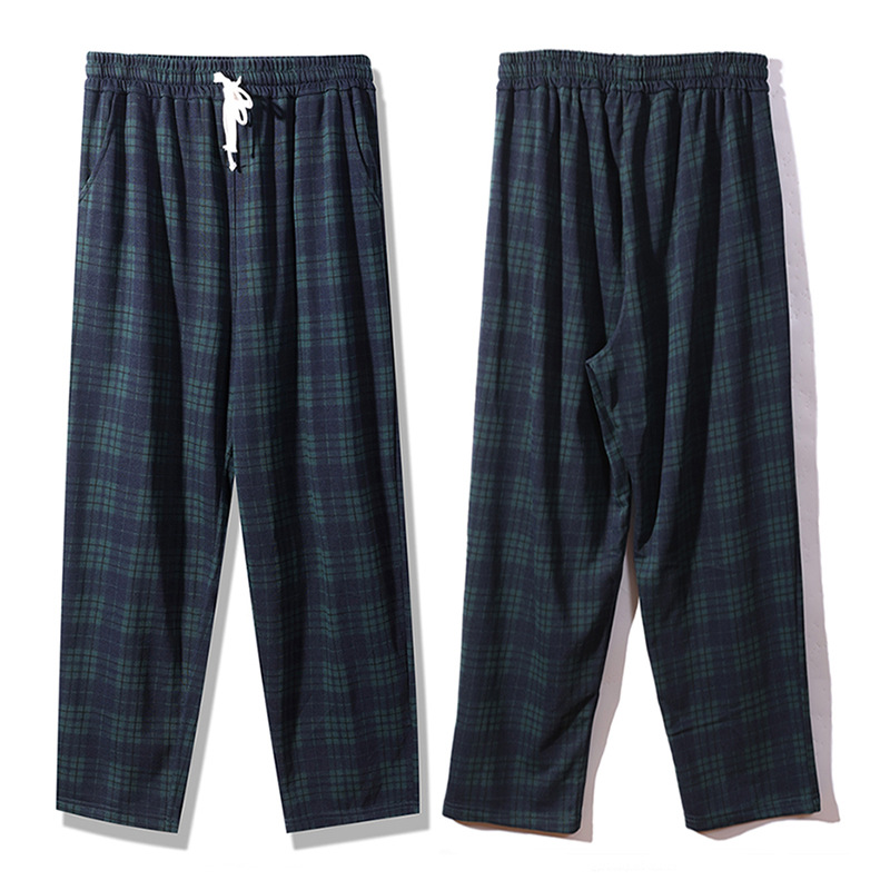 TikTok Kuaishou celana wanita, musim gugur dan musim dingin siaran langsung katun populer tali pinggang kotak-kotak ukuran besar mode Nasional nyaman luar ruangan kasual