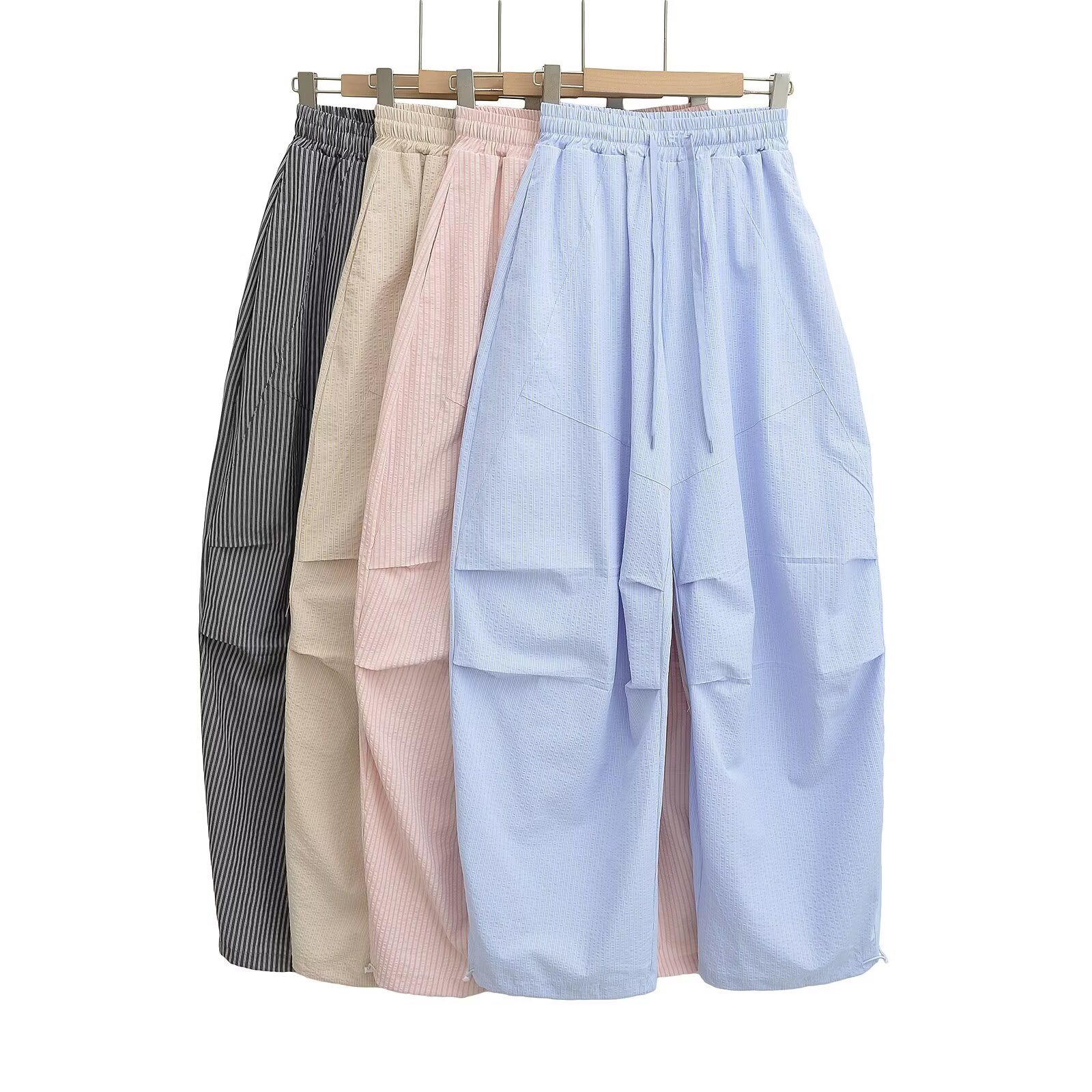 Celana Sabrang Yoga Menari Gadis Pedas Model Musim Panas Celana Panjang Kerja Kaki Lebar Gaya Santai Bergaris Dopamin Wanita