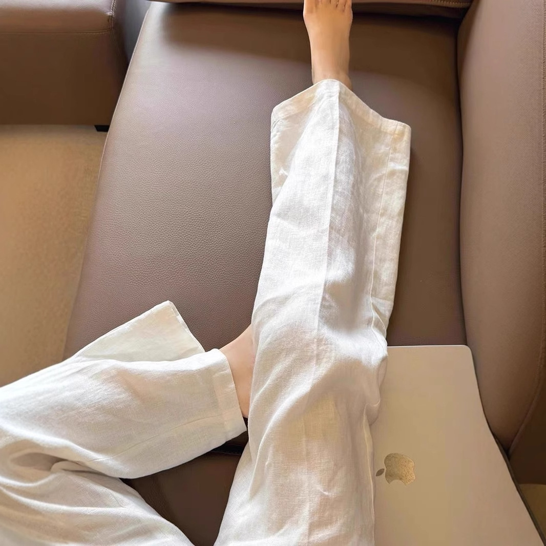 Celana Linen Wanita Gaya Kasual dan Dingin Celana Lurus Bernapas Tipis Ringan Musim Panas 2025
