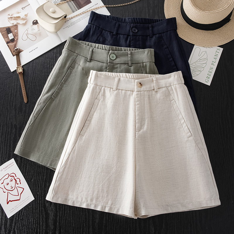 Celana Pendek Wanita Kaki Lebar Linen Linen Musim Panas Ringan Model Baru Terlihat Ramping Kasual Huruf A Celana Setengah Perempat Bahan Linen