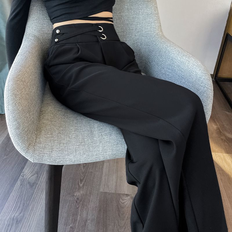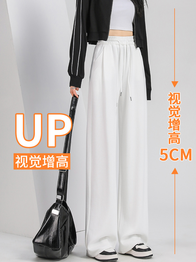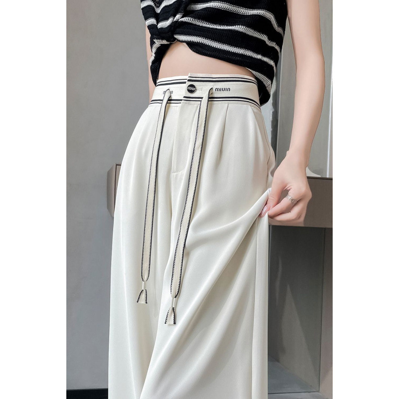 Celana Panjang Kasual Olahraga Terlihat Kurus Pinggang Tinggi Celana Lurus Model Tipis Musim Panas 2025 Wanita Celana Kaki Lebar Warna Hitam Sutra Es