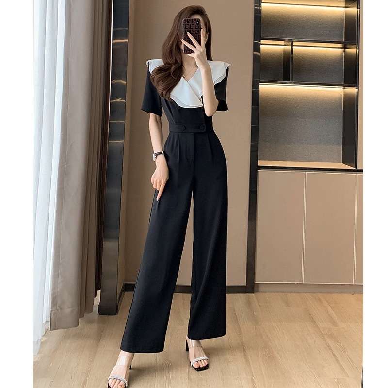 Jumpsuit Jas Gaya Senior Model Baru Musim Panas 2025 Jumpsuit Celana Kulot Warna Hitam Sifon Kecil Model Tipis Musim Panas Wanita