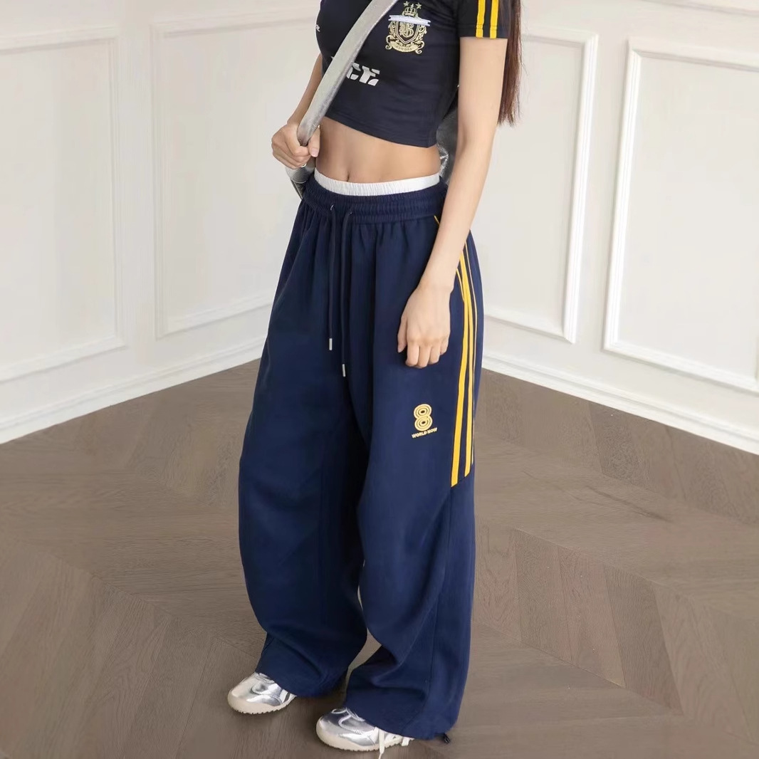 Celana Olahraga Warna Biru Tua Wanita Musim Semi Musim Panas Celana Olahraga Pakaian Kerja Gaya Amerika Celana Tari Jazz Jazz Tari Jalanan Santai Kaki Lebar