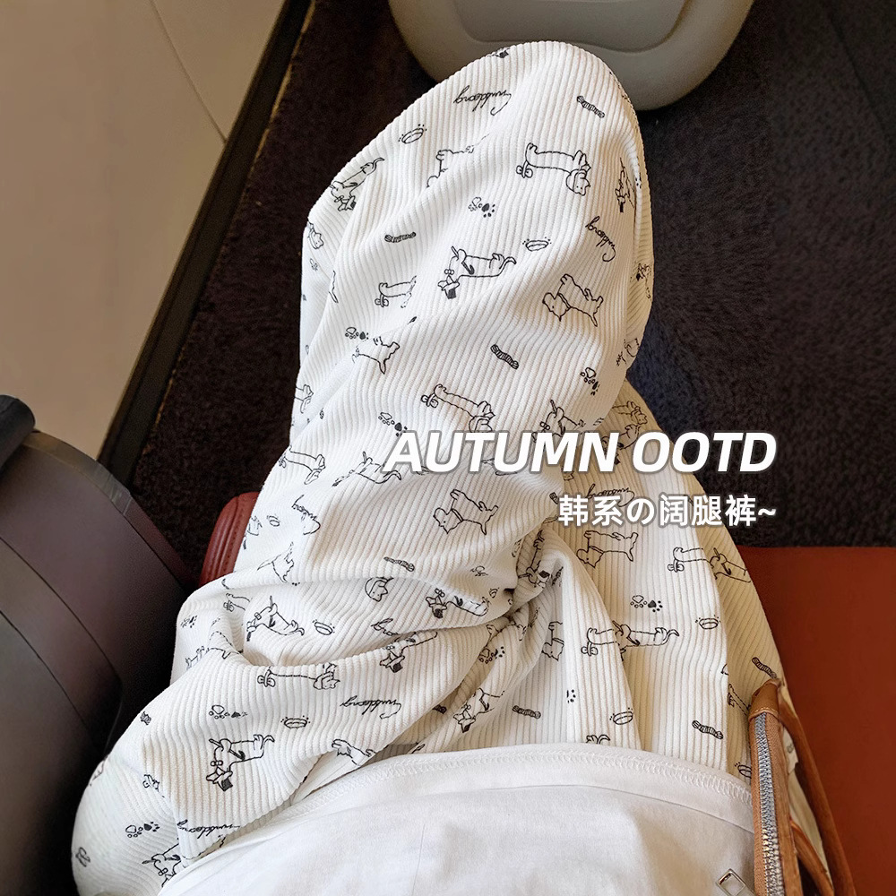 Celana panjang kulot wanita, celana pinggang tinggi bercetak Langsing gaya Korea modis musim panas 2023