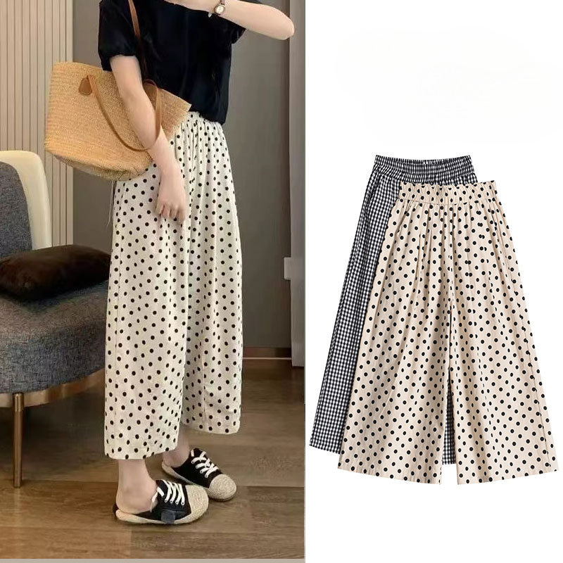 [Sumber Pabrik] Musim Panas Retro Cetak Model Tipis Longgar Kaki Sabrang Celana 9/10 Kasual Pinggang Tinggi Mudah Dipadu Padan