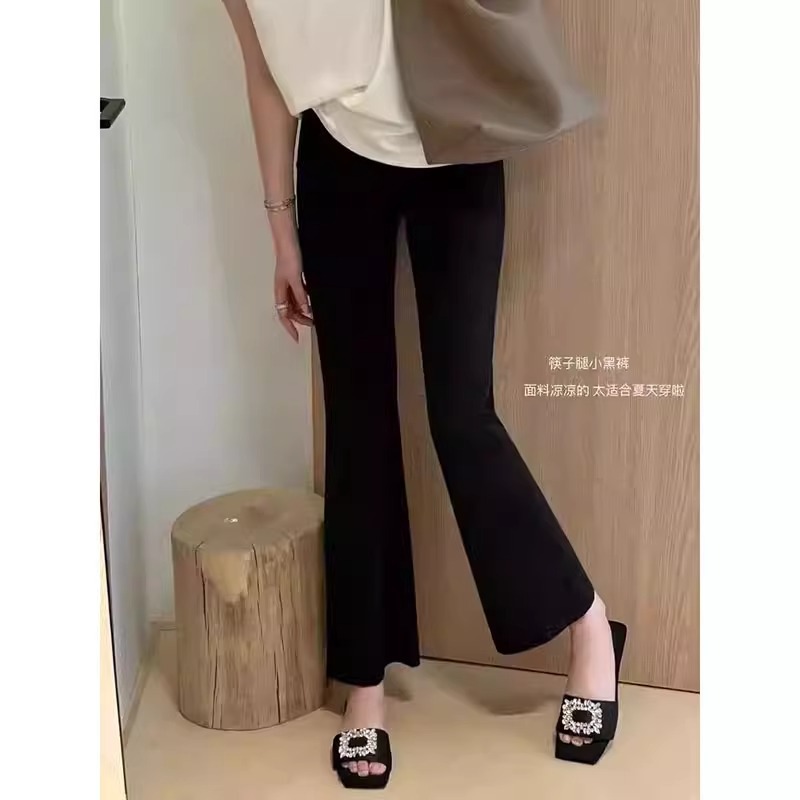 Celana Panjang Mikro Celana Sedan Wanita Pinggang Tinggi Ramping Elastis Model Tipis Musim Panas Celana Sembilan Persepuluh Terlihat Langsing Celana Tabung Asap Warna Hitam Ukuran Besar