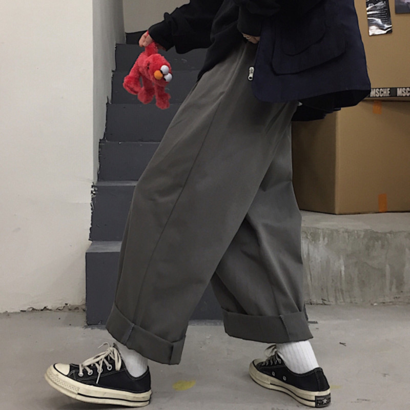 Celana panjang katun murni wanita, perkakas bf kasual longgar pelangsing lurus 200kg, celana panjang kaki lebar pinggang tinggi modis