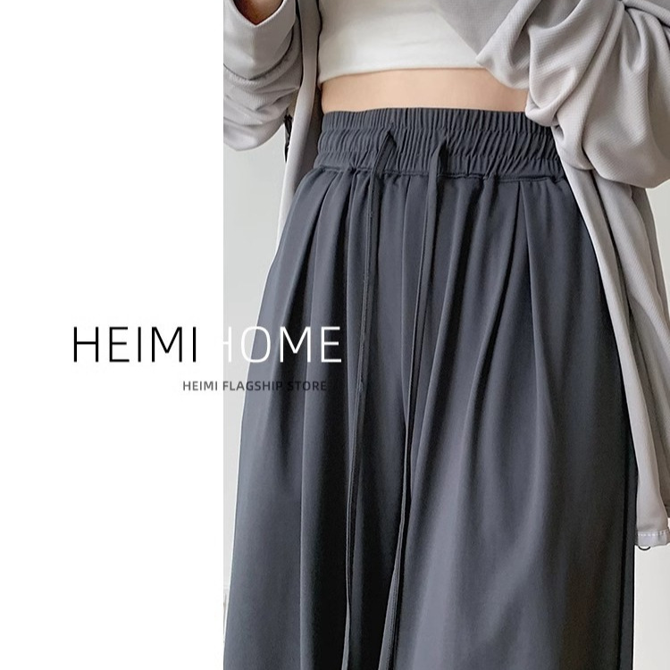 Celana Kaki Lebar Sutra Es Wanita Ukuran Besar Ukuran Besar 300Kg Celana Panjang Musim Panas Wanita Model Tipis Pinggang Tinggi Lurus Kasual Anti Sinar Matahari