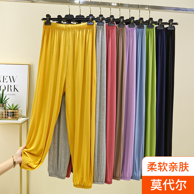 Celana kasual Modal wanita celana anti-nyamuk tipis musim panas celana pelangsing longgar ukuran besar celana ketat pergelangan kaki cocok untuk semua