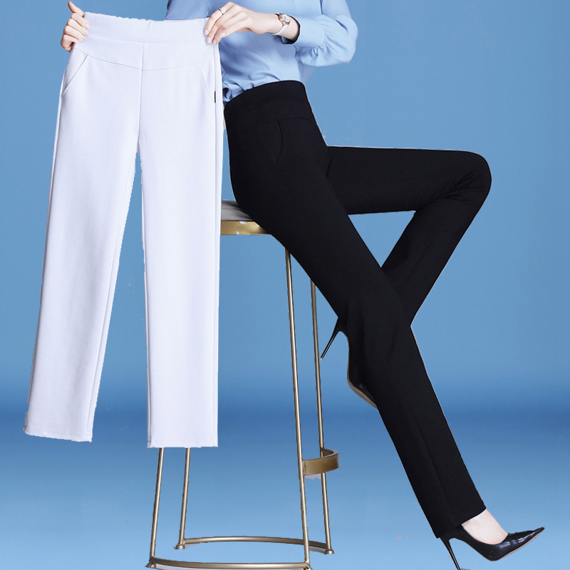 Celana lurus kecil elastis pinggang tinggi peregangan celana wanita ibu Musim Semi dan Musim Gugur menggantung celana potong kecil ukuran besar gadis gemuk