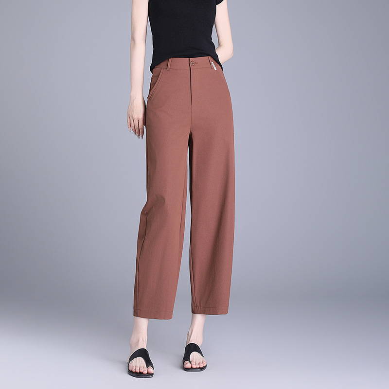 Celana Harem Wanita Celana 9/10 Pinggang Tinggi Tipis Musim Panas Celana Lobak Terlihat Kurus Ukuran Besar Nyaman Celana Wanita Lintas Batas Mudah Dipadu Padan
