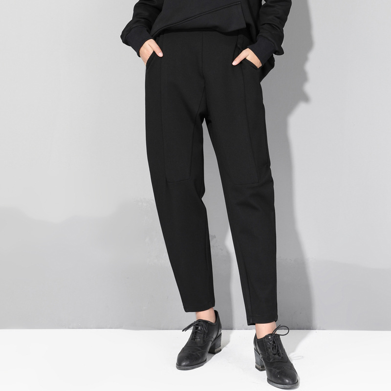 Celana harem longgar ukuran besar Eropa dan Amerika celana panjang pergelangan kaki longgar wanita musim semi dan musim gugur celana panjang lobak longgar celana lurus fashion