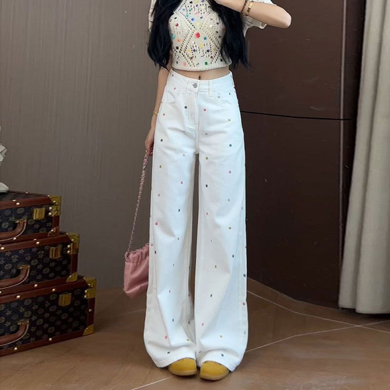 刺绣小花阔腿牛仔裤女秋季新款设计感大码高腰显瘦百搭直筒拖地裤