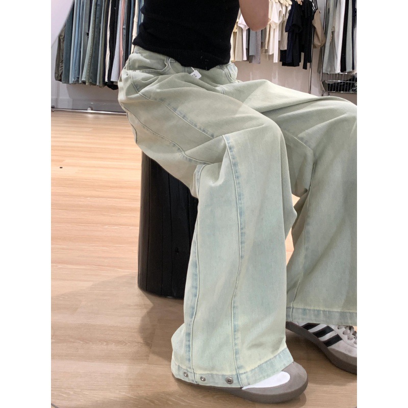 Celana jeans lebar berwarna terang retro yang dicuci untuk wanita 2025 musim semi & musim gugur baru berpinggang tinggi longgar ramping tampak lurus panjang lantai.