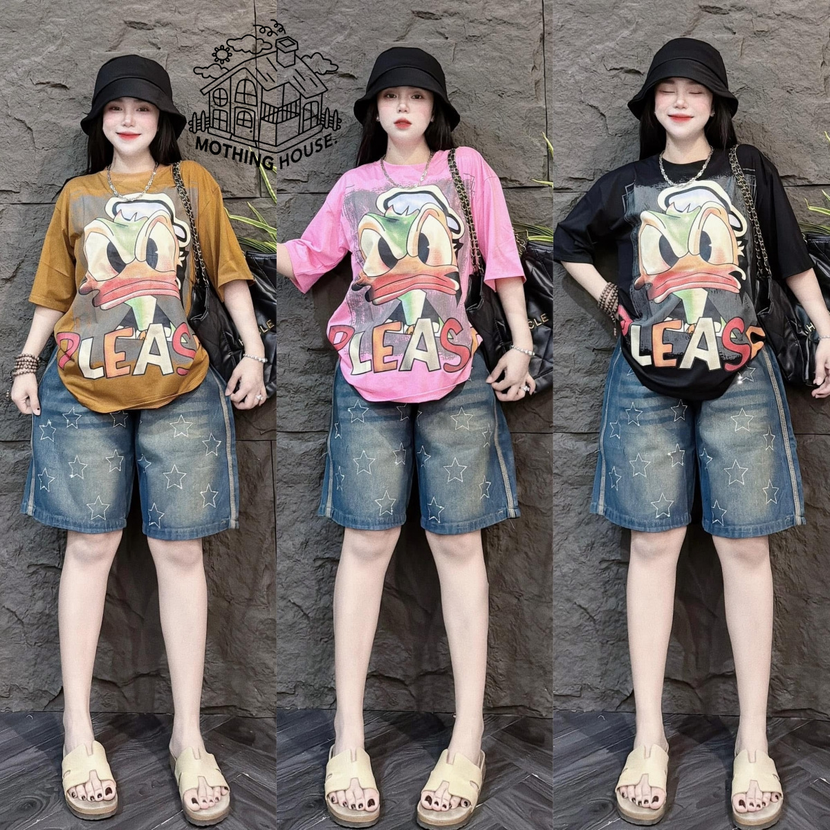 Setelan Manis Lintas Batas Celana Pendek Wanita Lengan Pendek Longgar Model Baru Musim Panas Set Dua Potong Kasual Dopamin Orang Kecil