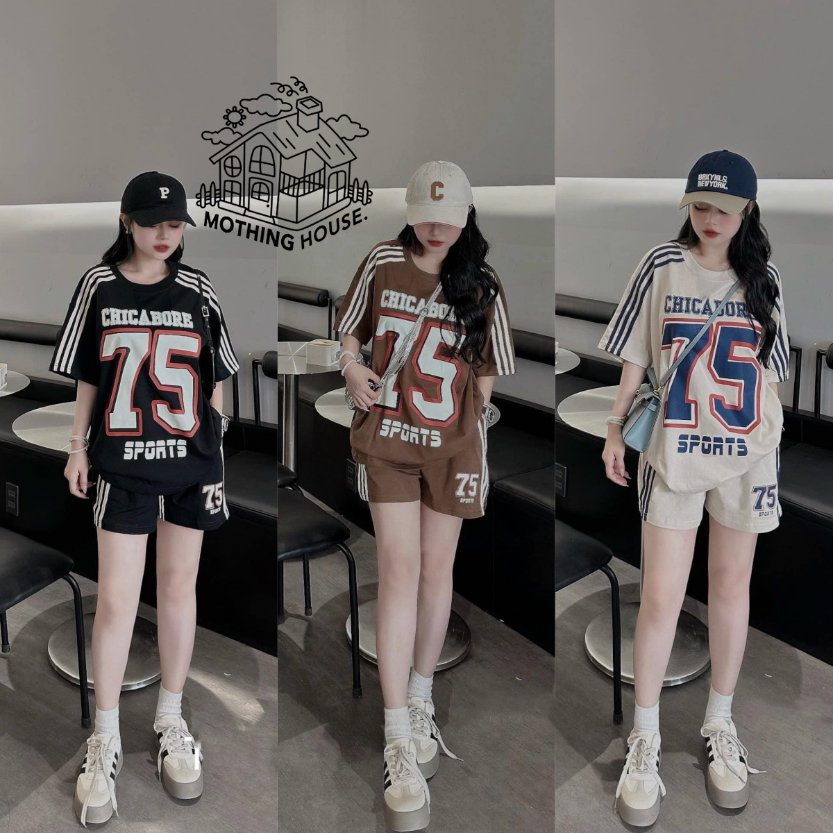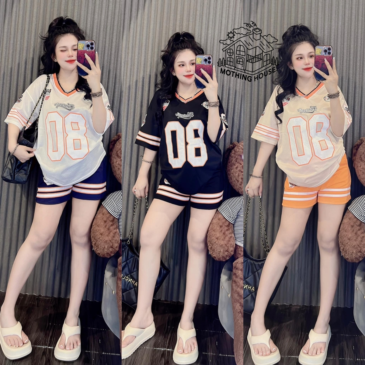 Setelan Olahraga Gaya Amerika Asia Tenggara Kaus Lengan Pendek Longgar Model Baru Musim Panas Wanita Celana Pendek Lari Ketat Setelan Dua Potong Instagram