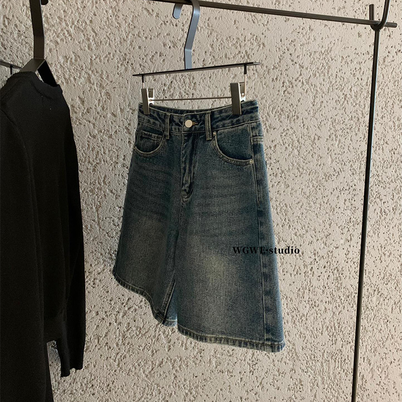 WGWE7327高腰复古牛仔短裤宽松显瘦休闲百搭阔腿a字热裤